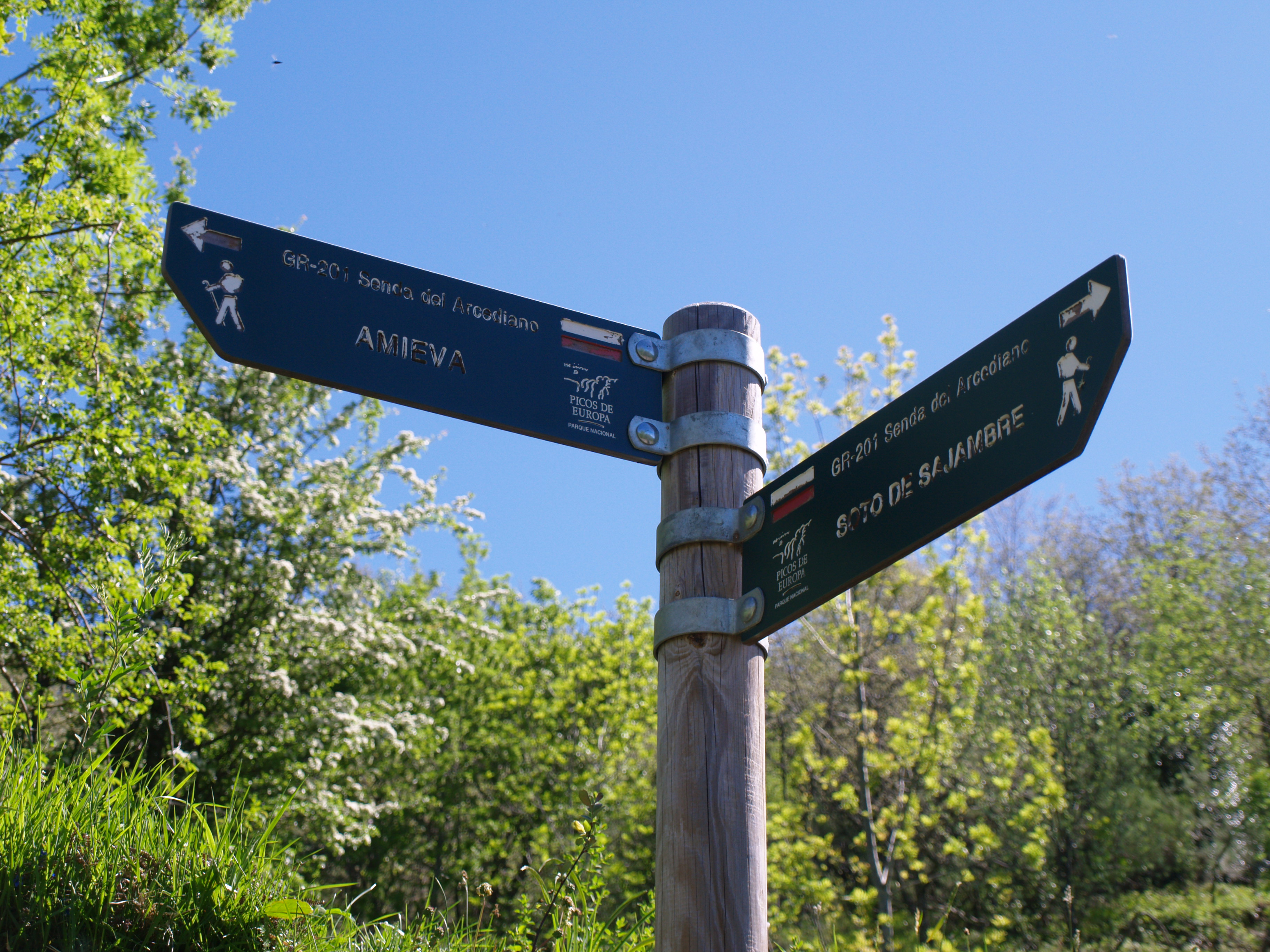 Al llegar a Soto de Sajambre se continúa hasta el final del pueblo en la misma dirección que llevábamos, se pasa la iglesia subiendo hacia la parte alta del pueblo, junto al puente y sin llegar a cruzarlo sale un camino hacia la izquierda y en ligera subida. En su inicio hay un cartel del Parque Nacional indicando el camino.