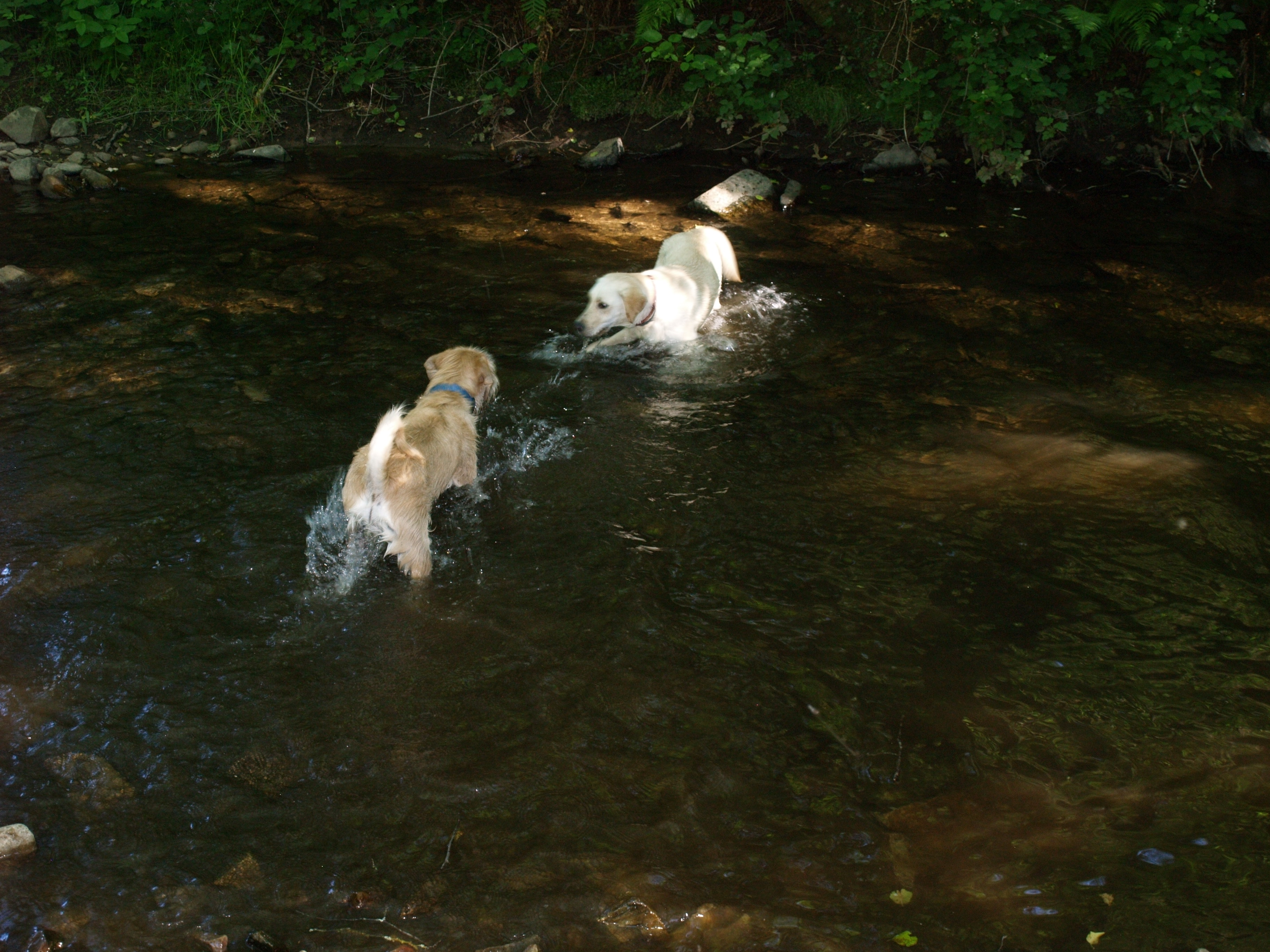 Coco y Cora, disfrutaron de unos cuantos baños. La temperatura era bastante alta, casi 30 grados, así que agradecieron mucho el chapuzón.