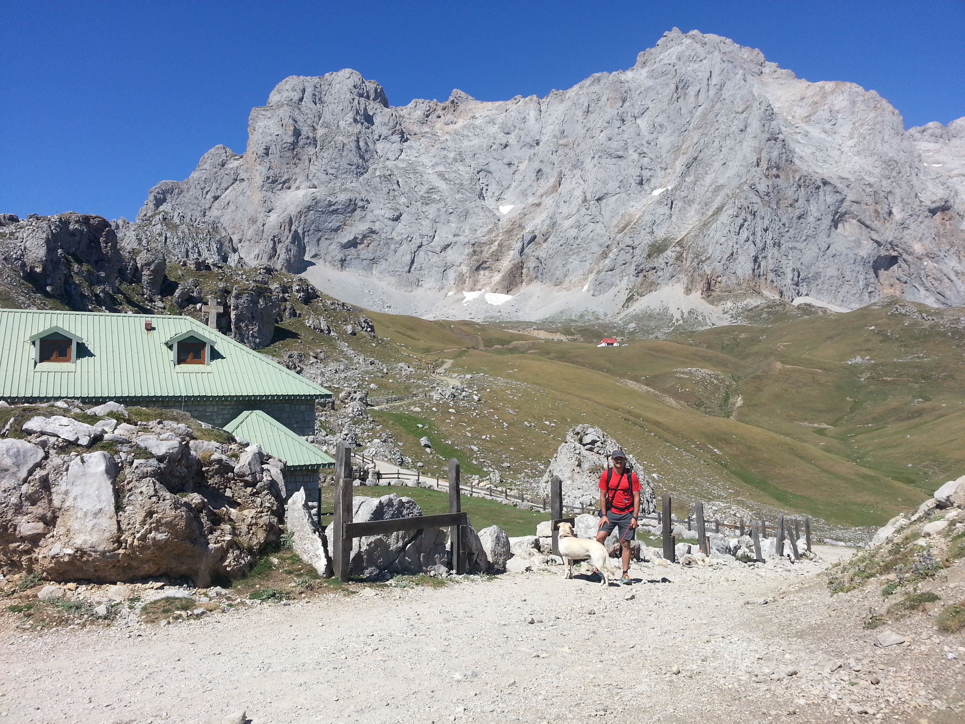 Al cabo de un rato comenzamos a ver las praderías de Aliva hasta que llegamos al Hotel Refugio Odriozola o de Aliva (1670m), situado sobre un gran cordón morrénico lateral alineado con el curso del río Duje y delante de los impresionantes espolones de Peña Vieja.