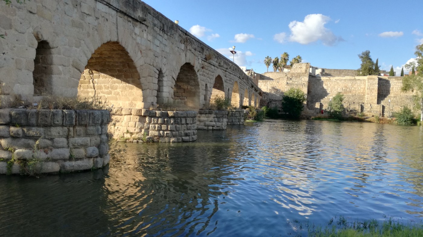 Con apenas 60.000 habitantes, Mérida se recorre fácilmente a pie. Declarada Patrimonio de la Humanidad por la UNESCO, los vestigios y edificios de la época romana se suceden por doquier. Nosotros nos perdimos plácidamente por sus callejuelas e hicimos un recorrido circular por el perímetro exterior de la ciudad. El puente romano sobre las aguas del Guadiana es precioso y uno de los más largos de todo el imperio.